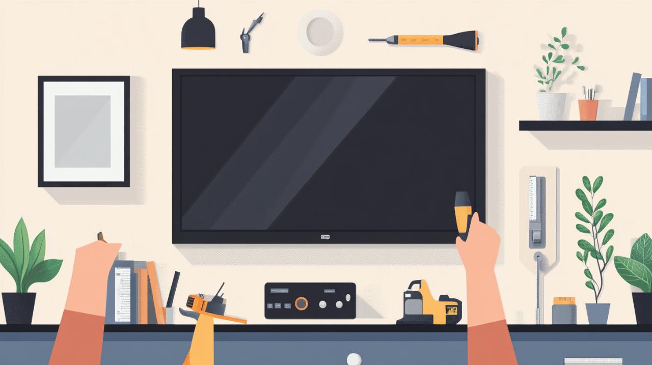 Commencez par rassembler l'ensemble des outils indispensables : une perceuse électrique avec différentes mèches adaptées au type de mur, un niveau à bulle pour garantir l'horizontalité, un détecteur de montants si vous travaillez sur du placo, un crayon pour les marquages, des tournevis appropriés aux vis fournies, et idéalement un assistant pour manipuler le téléviseur en toute sécurité. Lisez attentivement le manuel d'utilisation du support avant toute manipulation, car chaque modèle présente ses particularités. Déterminez ensuite l'emplacement idéal de votre téléviseur en tenant compte de plusieurs critères : la proximité d'une prise électrique pour éviter les rallonges disgracieuses, la hauteur de visionnage optimale avec le centre de l'écran positionné à hauteur des yeux, soit entre 95 et 110 centimètres dans un salon et entre 120 et 135 centimètres dans une chambre. Avant de percer définitivement, simulez l'emplacement en maintenant le support contre le mur ou en utilisant un gabarit en carton aux dimensions de votre écran. Cette précaution simple permet de visualiser le rendu final et d'ajuster si nécessaire. Certains fabricants proposent même des applications mobiles pour faciliter le positionnement du premier trou de perçage. Une fois l'emplacement validé, positionnez le support contre le mur et utilisez le niveau à bulle pour vérifier l'horizontalité parfaite. Marquez soigneusement au crayon l'emplacement de chaque trou de fixation en vous assurant que les repères sont bien visibles et précis.